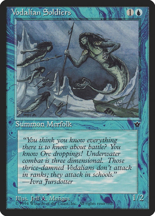 Rarity: C Creature Type or Sub Type: Creature Merfolk P: 1 T: 2 Flavor: "Stalwart Soldiers, you stand against the Homarids for Vodalia and fo...