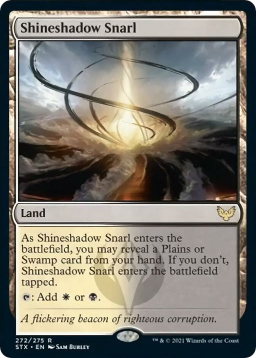 Rarity: R #: 272 Creature Type or Sub Type: Land Rules Text Contains: As Shineshadow Snarl enters the battlefield, you may reveal a Plains or ...
