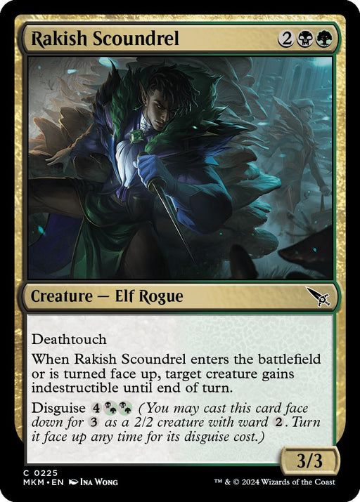 Rarity: C #: 225 Creature Type or Sub Type: Creature — Elf Rogue P: 3 T: 3 Rules Text Contains: Deathtouch When Rakish Scoundrel enters t...