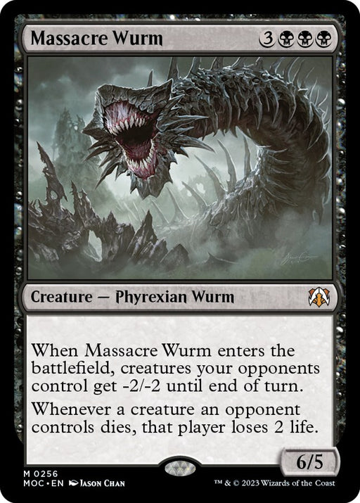 Rarity: M #: 256 Creature Type or Sub Type: Creature — wurm P: 6 T: 5 Rules Text Contains: When Massacre Wurm enters the battlefield, creatu...