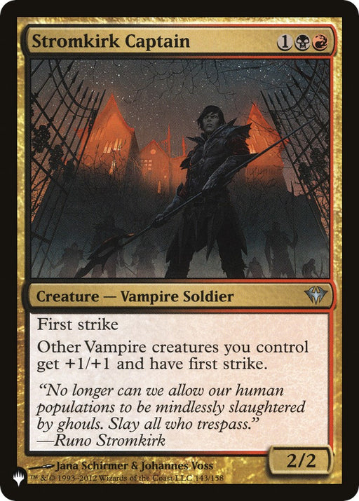 Rarity: U #: 143/158 Creature Type or Sub Type: Creature — Vampire Soldier P: 2 T: 2 Rules Text Contains: First strike Other Vampire crea...