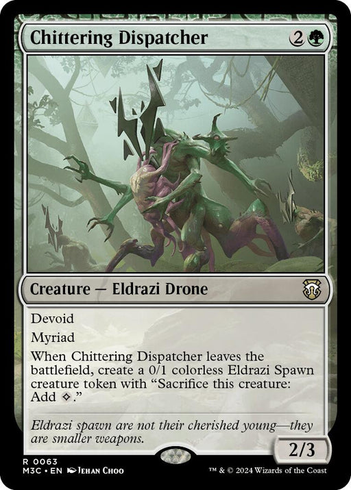 Rarity: R #: 63 Creature Type or Sub Type: Creature — Eldrazi Drone P: 2 T: 3 Rules Text Contains: Devoid Myriad When Chittering Dispa...