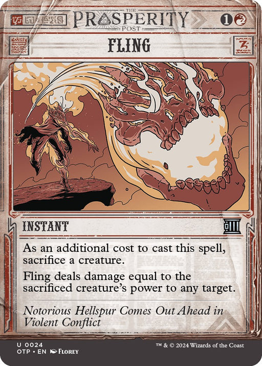Rarity: C #: 134 Creature Type or Sub Type: Instant Rules Text Contains: As an additional cost to cast Fling, sacrifice a creature.Fling deals...