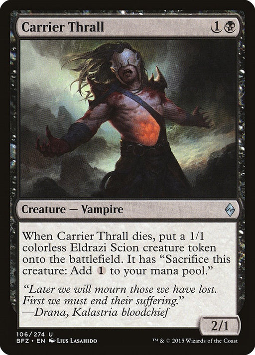 Rarity: U #: 106 Creature Type or Sub Type: Creature — Vampire P: 2 T: 1 Rules Text Contains: When Carrier Thrall dies, put a 1/1 colorless ...
