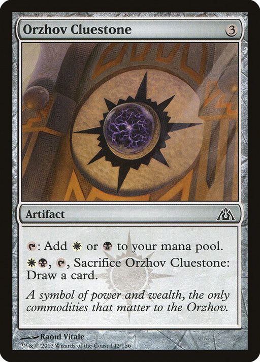 Rarity: C #: 142 Creature Type or Sub Type: Artifact Rules Text Contains: T: Add W or B to your mana pool. WB, T, Sacrifice Orzhov Clueston...