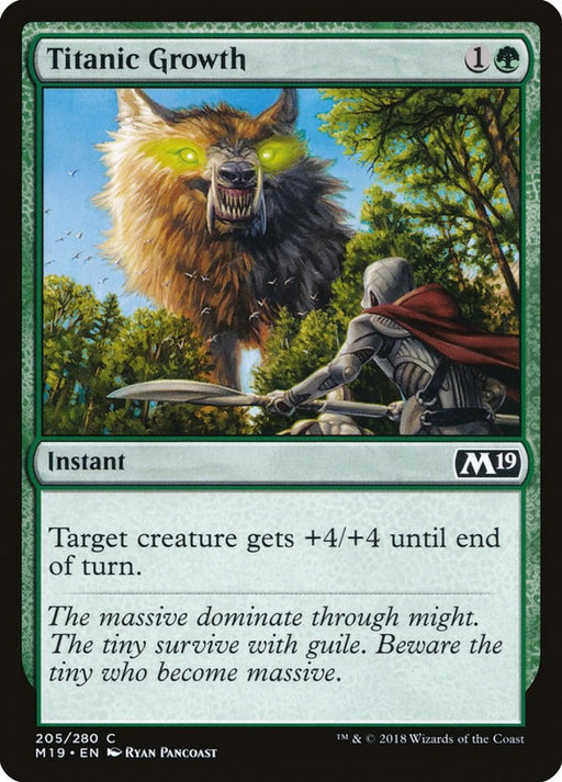 Rarity: C #: 205 Creature Type or Sub Type: Instant Rules Text Contains: Target creature gets +4/+4 until end of turn. Flavor: The massive do...