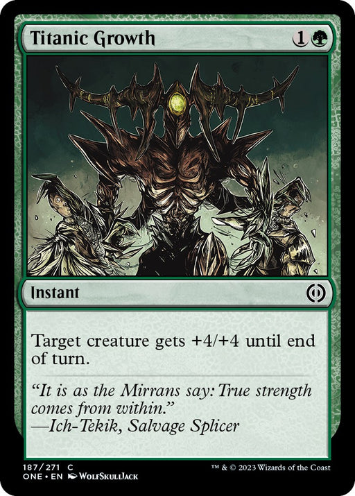 Rarity: C #: 210 Creature Type or Sub Type: Instant Rules Text Contains: Target creature gets +4/+4 until end of turn. Flavor: The massive do...