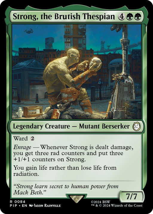 Rarity: R #: 84 P: 7 T: 7 Rules Text Contains: Ward 2 Enrage — Whenever Strong is dealt damage, you get three rad counters and put three +...