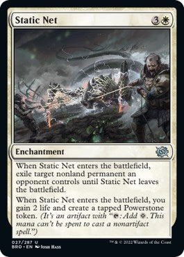 Rarity: U #: 27 Creature Type or Sub Type: Enchantment Rules Text Contains: When Static Net enters the battlefield, exile target nonland perma...
