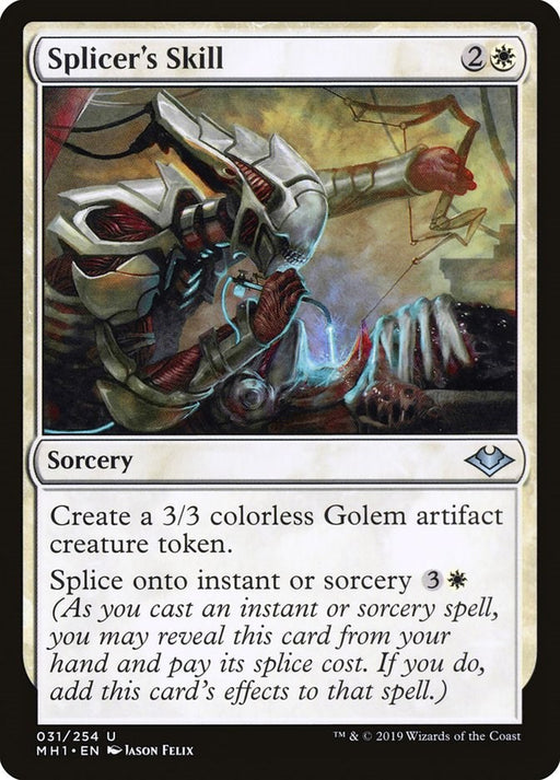 Rarity: U #: 31 Creature Type or Sub Type: Sorcery Rules Text Contains: Create a 3/3 colorless Golem artifact creature token. Splice onto ins...