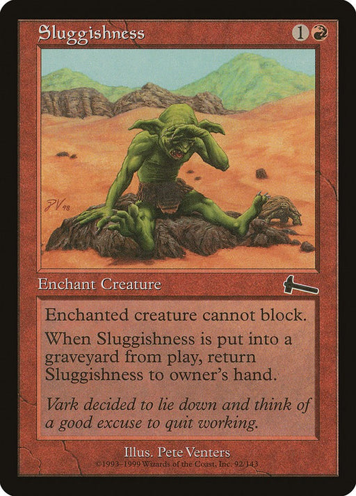 Rarity: C #: 92 Creature Type or Sub Type: Enchant Creature Rules Text Contains: Enchanted creature cannot block. When Sluggishness is put ...