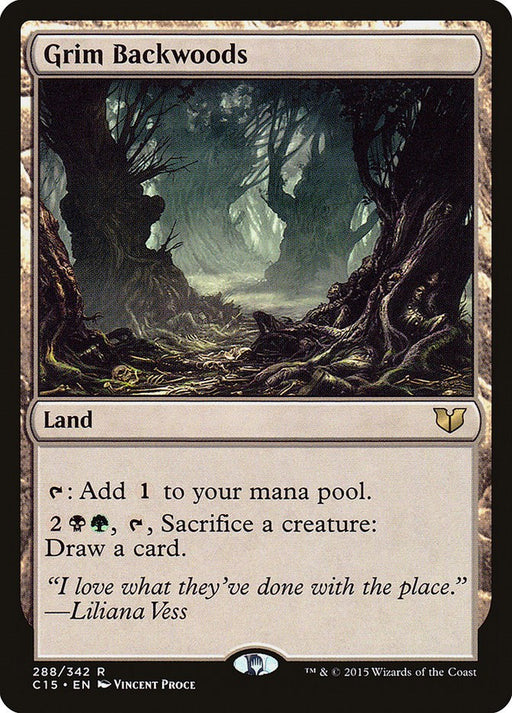 Rarity: R #: 309 Creature Type or Sub Type: Land Rules Text Contains: T: Add C. 2BG, T, Sacrifice a creature: Draw a card. Flavor: "I love...