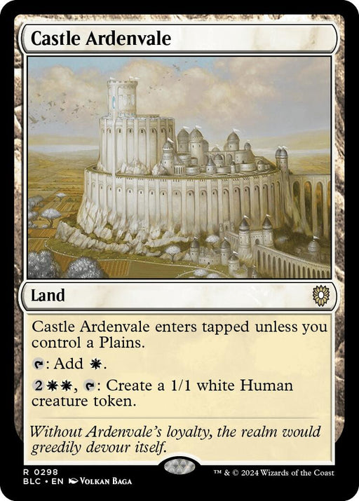 Rarity: R #: 298 Creature Type or Sub Type: Land Rules Text Contains: Castle Ardenvale enters tapped unless you control a Plains. T: Add W....