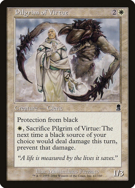 Rarity: C #: 41 Creature Type or Sub Type: Creature — Cleric P: 1 T: 3 Rules Text Contains: Protection from black W, Sacrifice Pilgrim of...